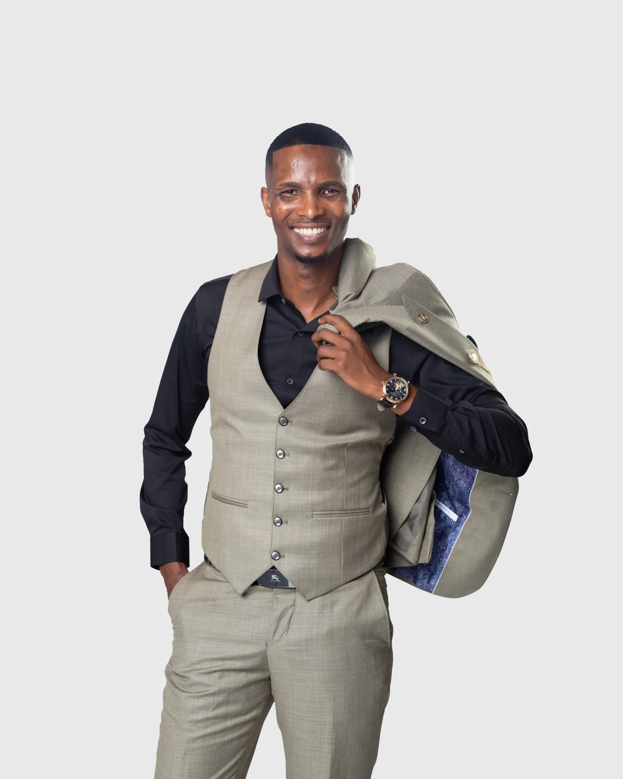 Marco Lorenzo – Taupe Sharkskin 3PCS Suit: A Perfect Blend of Style and Comfort